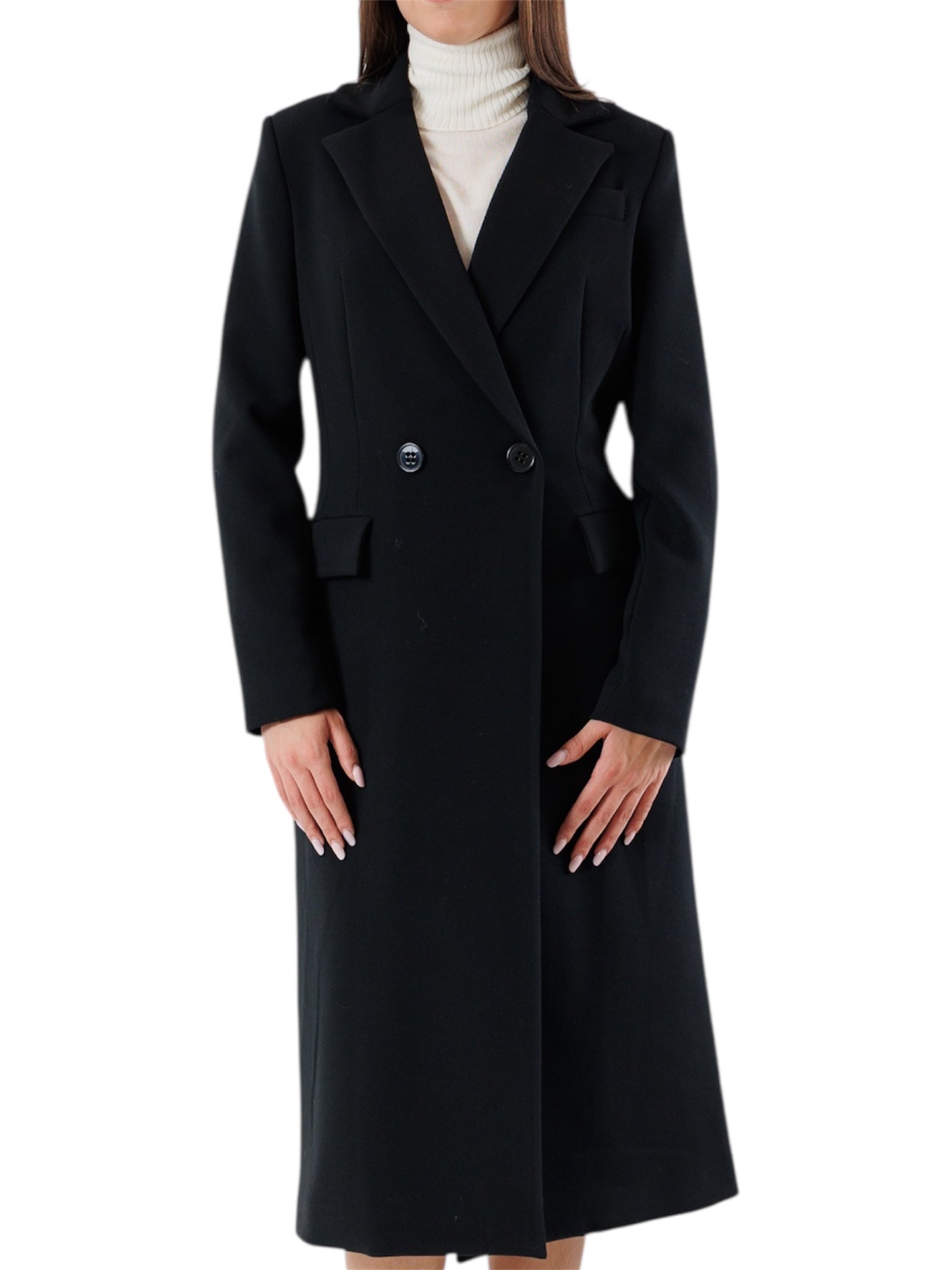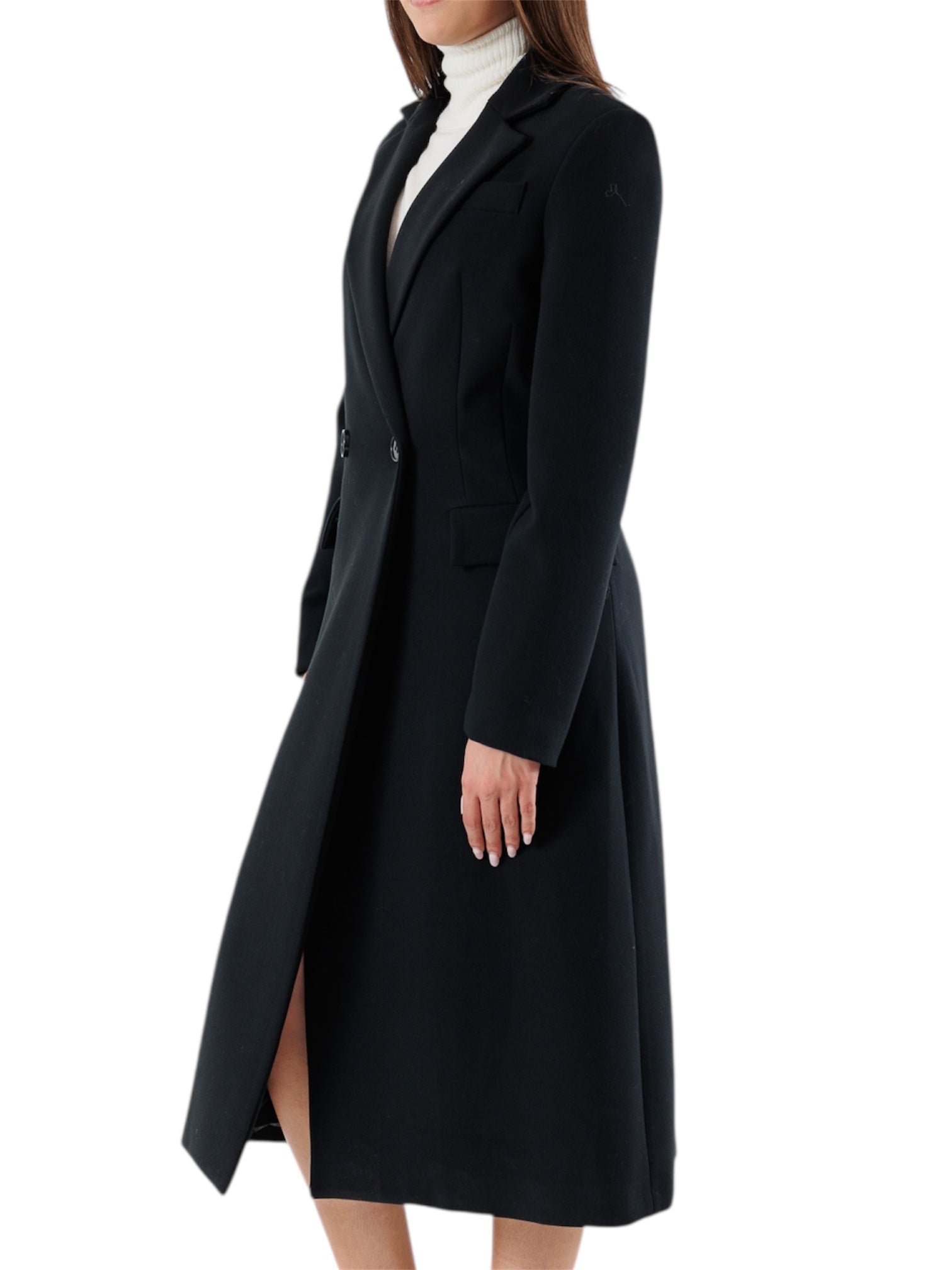La lunghezza sotto al ginocchio lo rende perfetto da abbinare sia a pantaloni eleganti che a stivali alti, per un look impeccabile in ogni occasione.