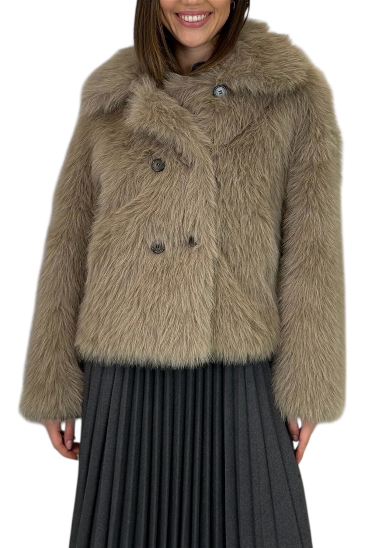 Sofisticato e avvolgente, il pellicciotto doppiopetto è il capo ideale per affrontare la stagione fredda con stile. Il design doppiopetto dona struttura e raffinatezza, mentre la linea morbida assicura comfort e una vestibilità armoniosa.
