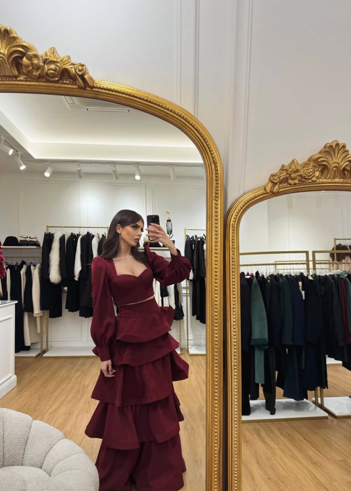 Completo iconico firmato NAOMI: la gonna Zafira, ormai must-have del nostro brand, si abbina armoniosamente al top coordinato, dando vita a un look sofisticato e senza tempo.